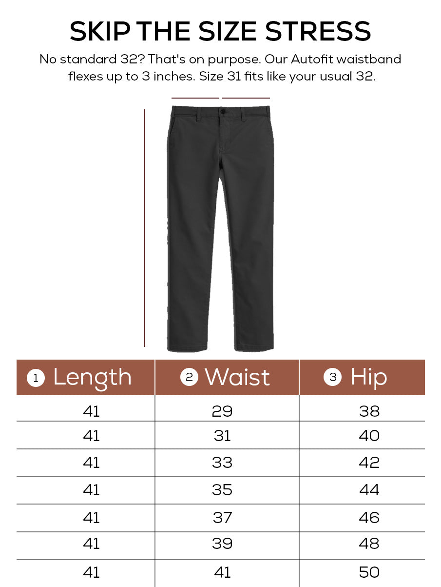 Our chinos are designed to adjust to movements and glide onto every male body type like butter. Our AutoFit Tech gives you 3 sizes in 1 pair of trousers, and a perfect fit every time.