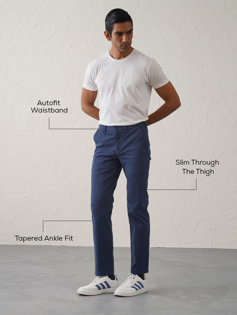 Our chinos are designed to adjust to movements and glide onto every male body type like butter. Our AutoFit Tech gives you 3 sizes in 1 pair of trousers, and a perfect fit every time.