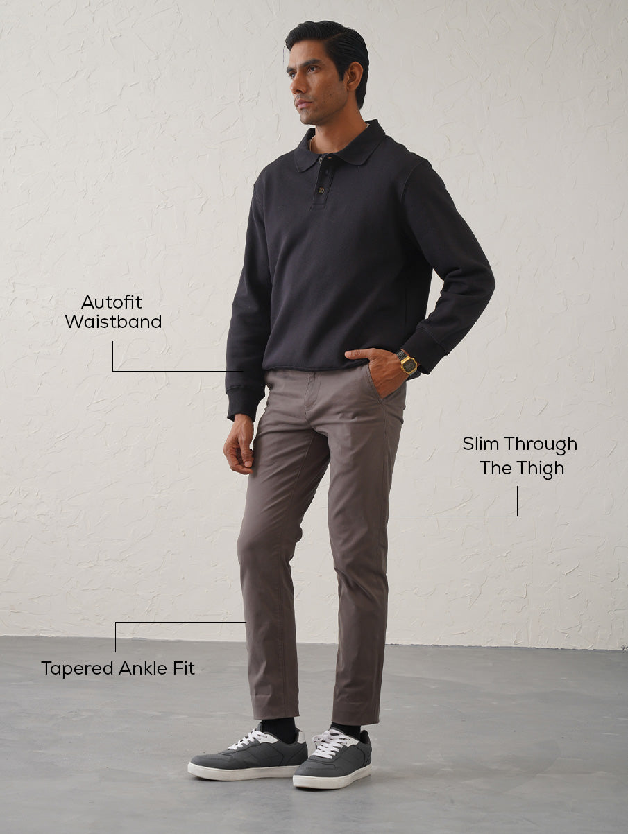 Our chinos are designed to adjust to movements and glide onto every male body type like butter. Our AutoFit Tech gives you 3 sizes in 1 pair of trousers, and a perfect fit every time.