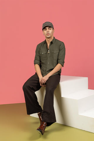 Men’s Full Sleeve Safari Shirt – Olive Green