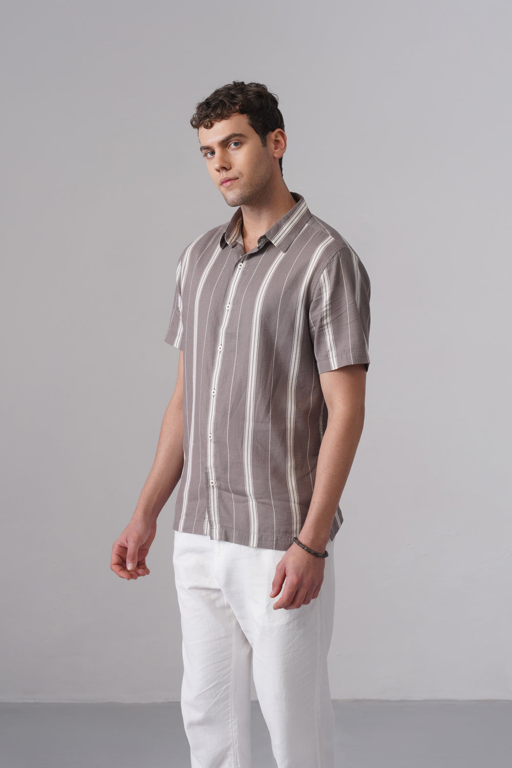 Elevate your everyday wardrobe with this Men’s Grey Printed Half Sleeve Shirt from Minus One, crafted for comfort, versatility, and timeless style. Made from a premium blend of 68% organic cotton and 32% cotton, this shirt delivers a soft, breathable feel with a natural, lightweight drape—ideal for all-day wear.
