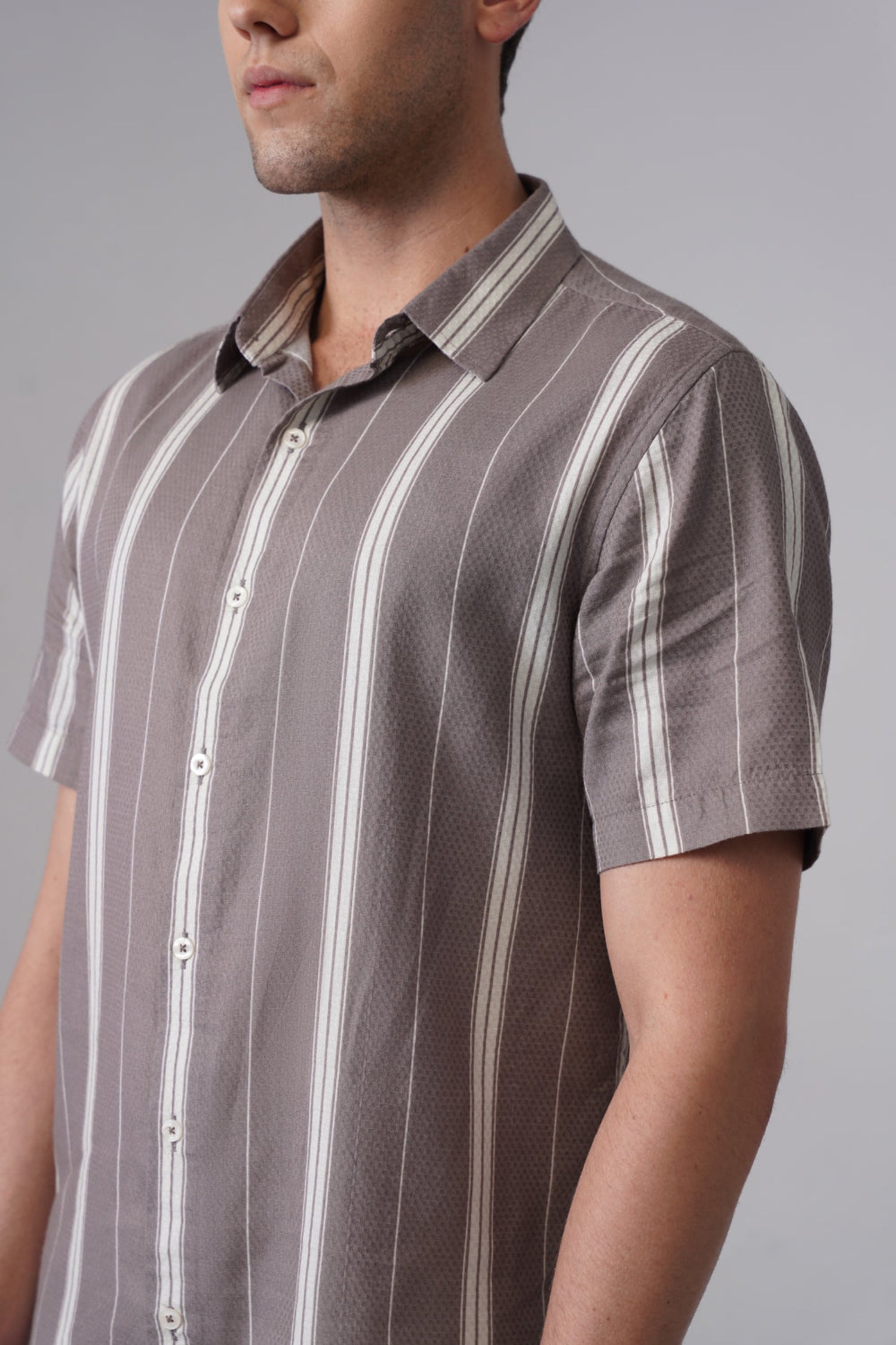 Grey Printed Organic Cotton Shirt – Regular Fit, Half Sleeves