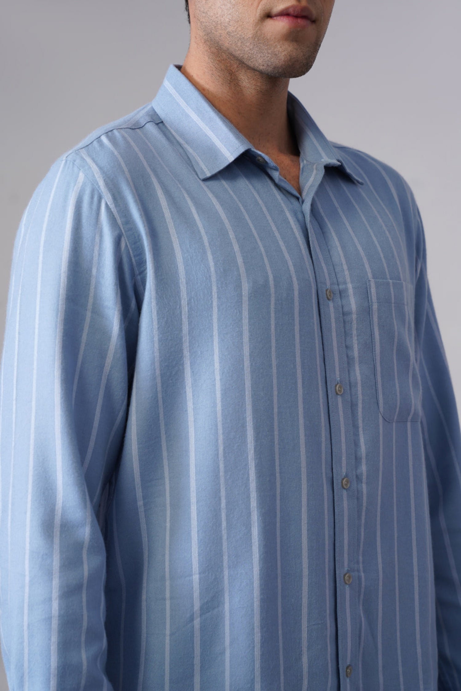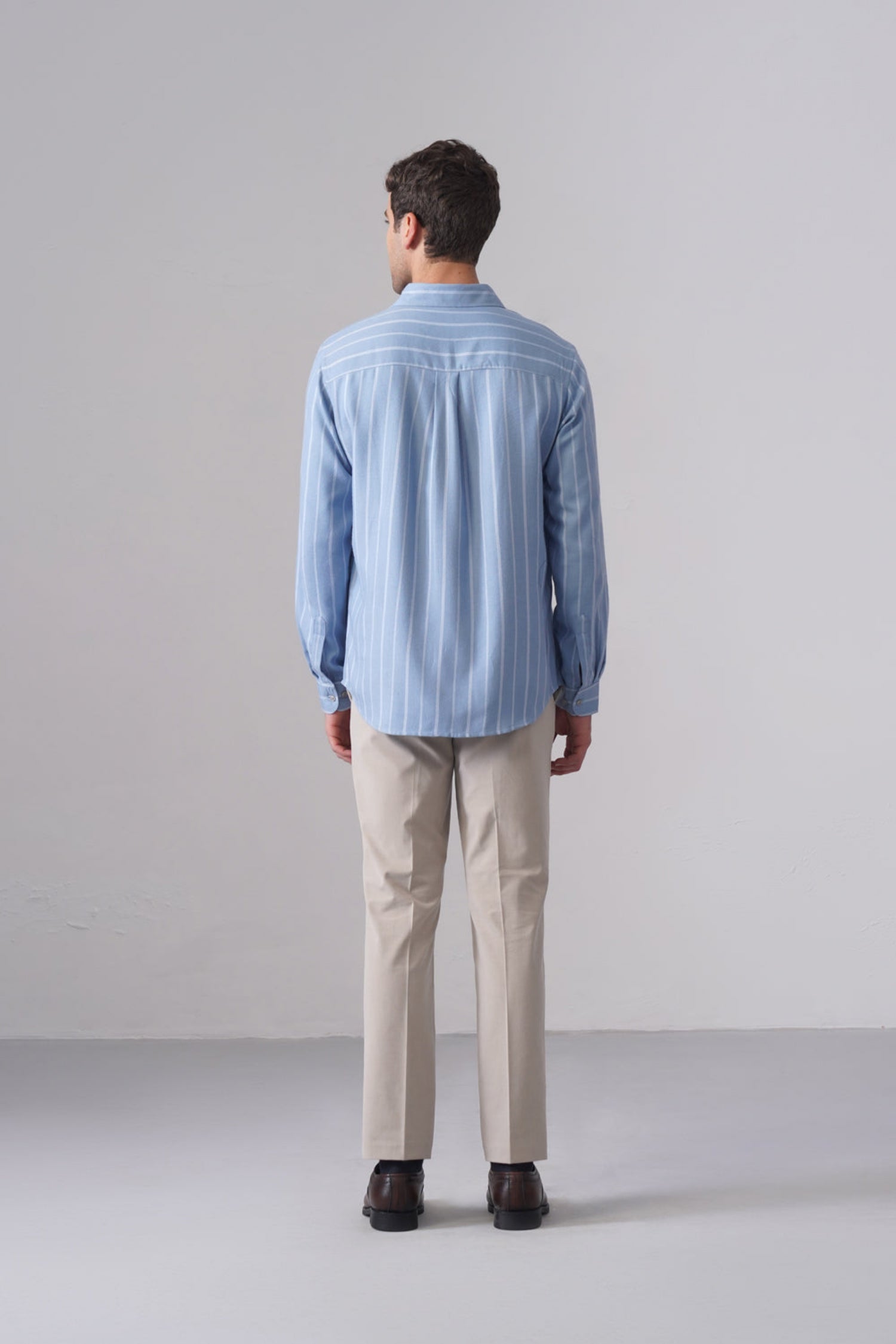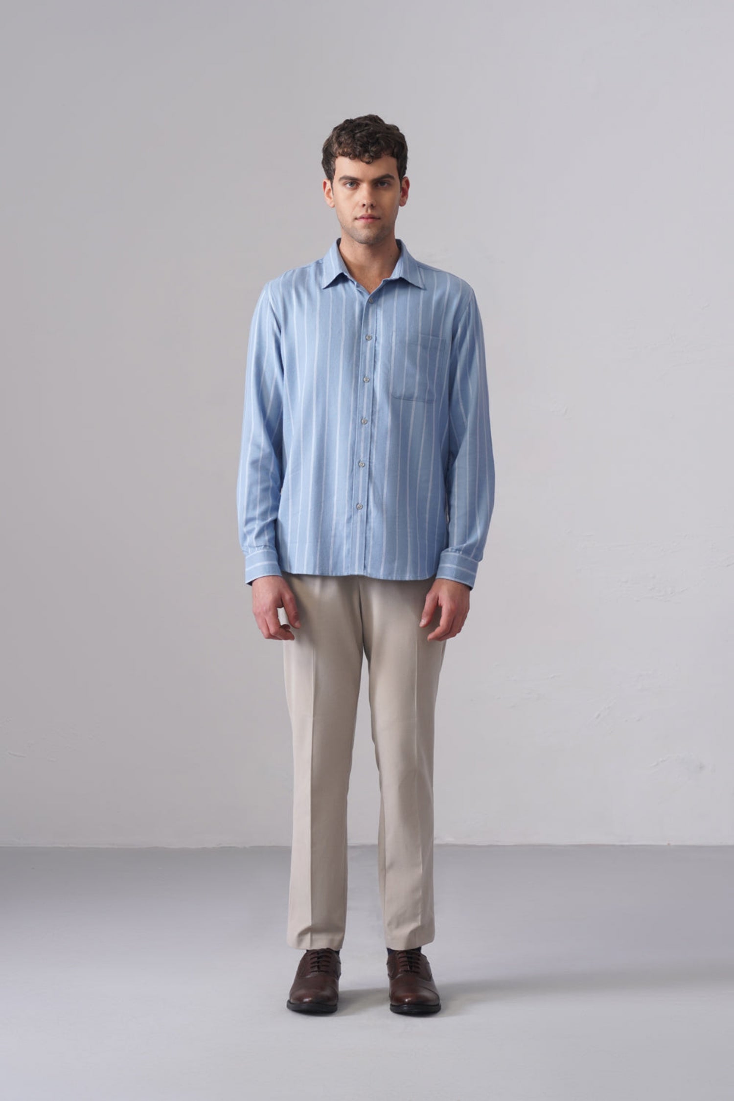 Light Blue Striped Brushed Cotton Shirt – Regular Fit