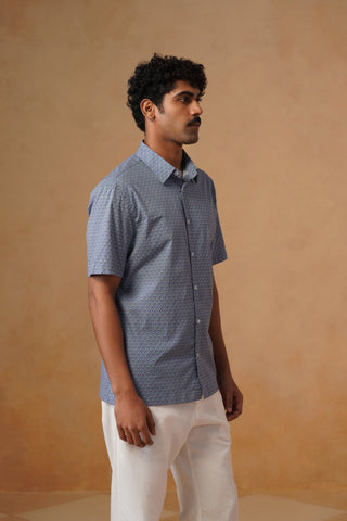 Blue Printed Organic Cotton Shirt – Regular Fit, Half Sleeves