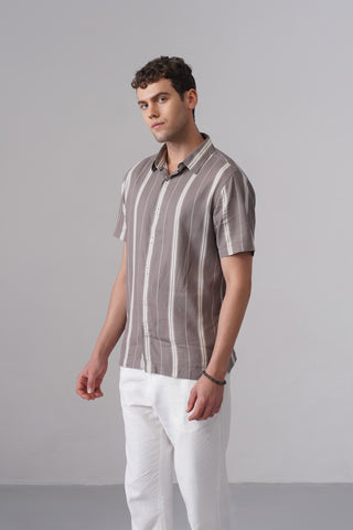 Grey Printed Organic Cotton Shirt – Regular Fit, Half Sleeves