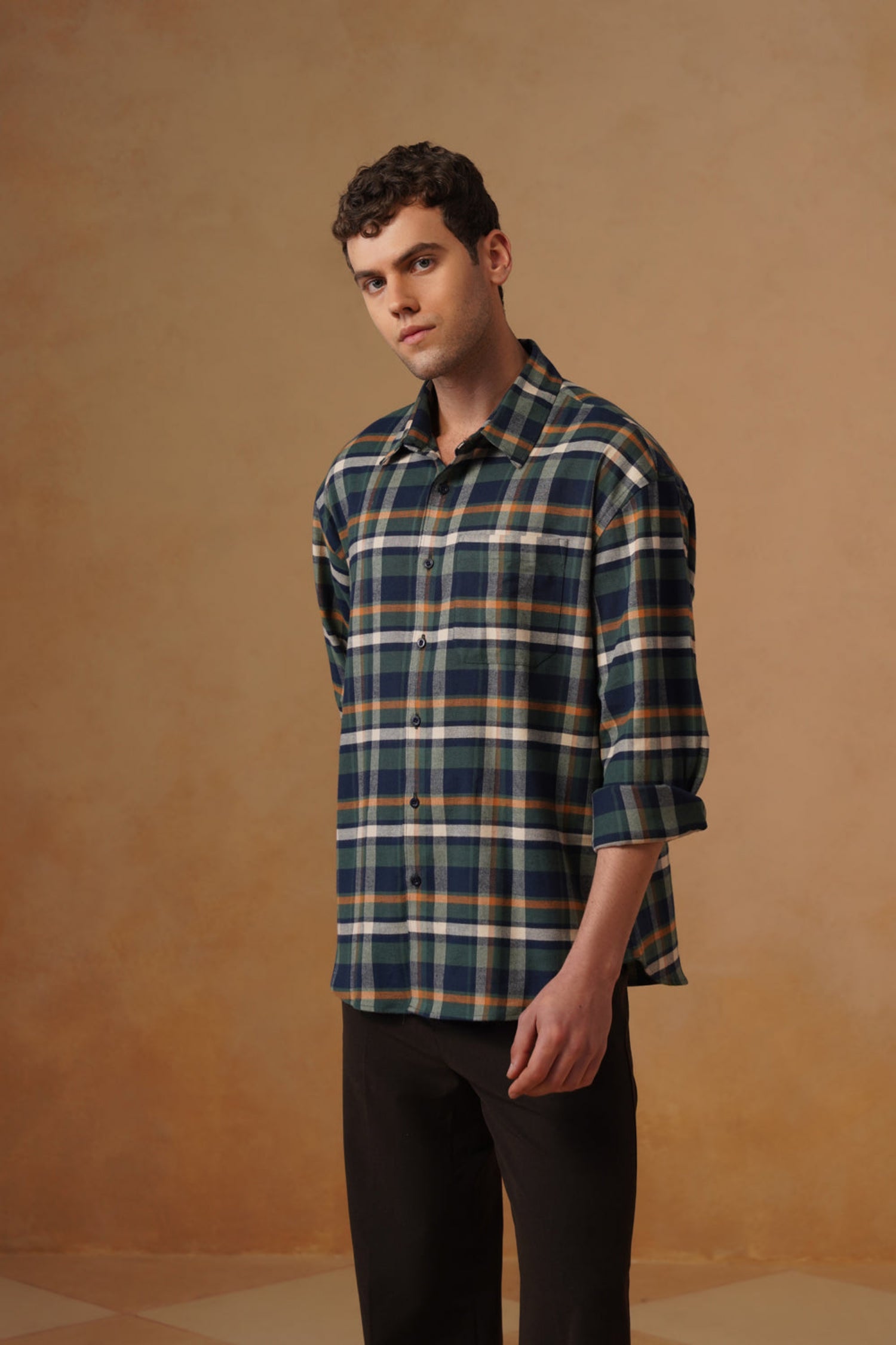 Designed in a loose fit, it delivers a relaxed, modern silhouette, while the normal shirt collar keeps the look classic and versatile. The blue checked pattern adds subtle character, making this shirt an easy choice for casual outings, office-casual settings, or weekend wear. Pair it with denims or chinos for a clean, effortless style.