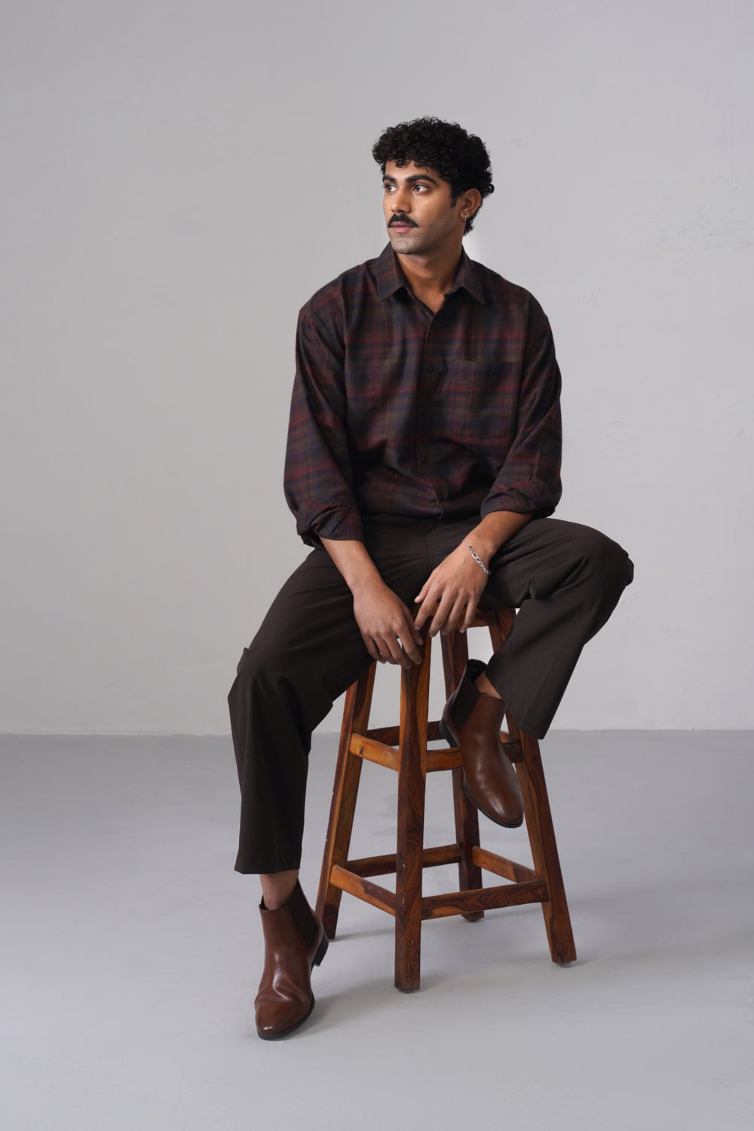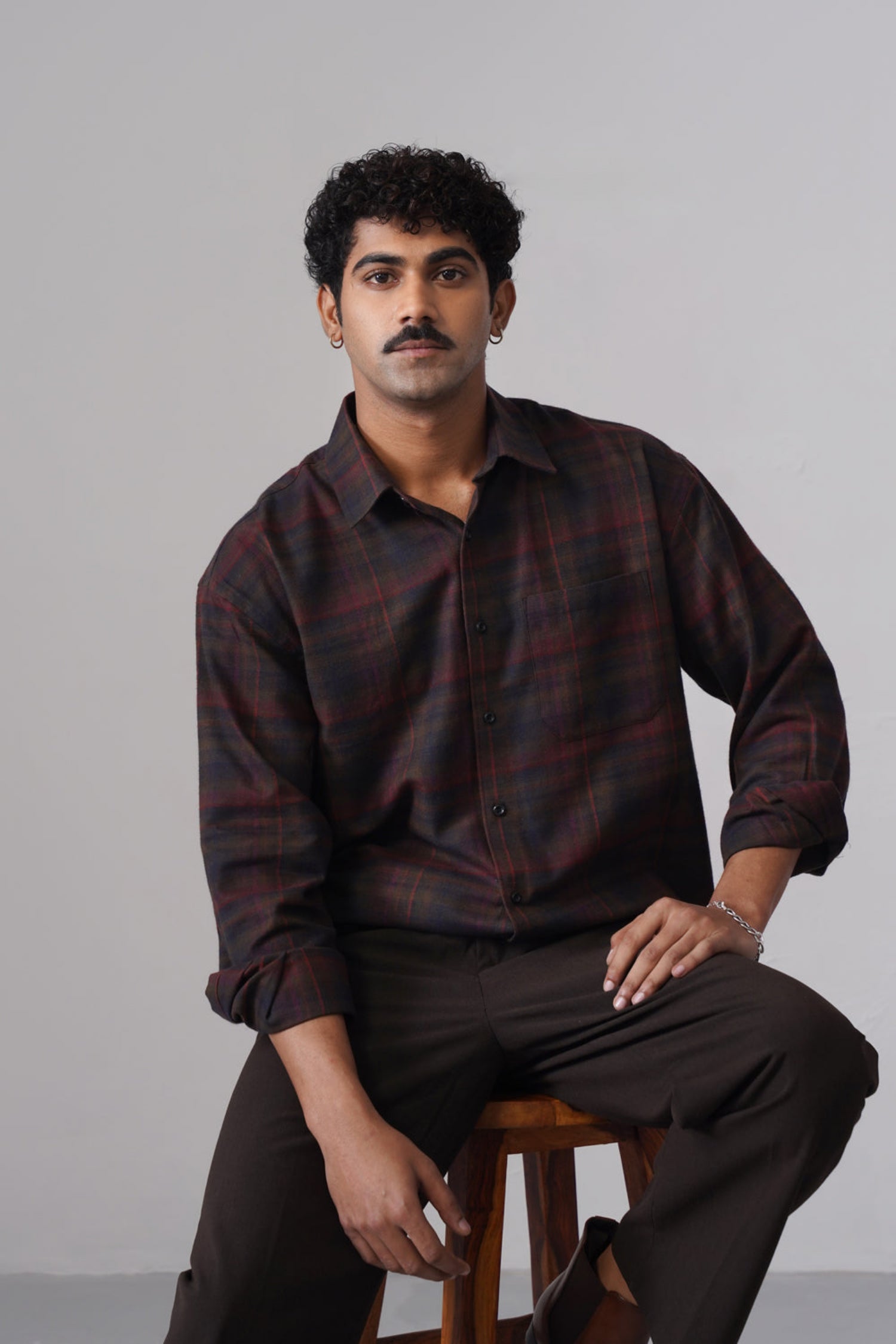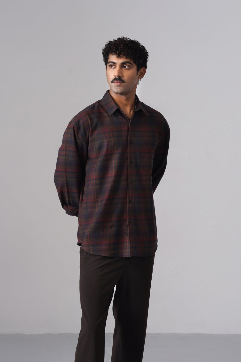 Designed in a loose fit for a relaxed and effortless silhouette, it features a normal shirt collar and full sleeves for classic versatility. The rich maroon and blue checked pattern adds depth and character, making it suitable for both casual and smart-casual occasions. Pair it with denims or chinos for a confident, everyday look.
