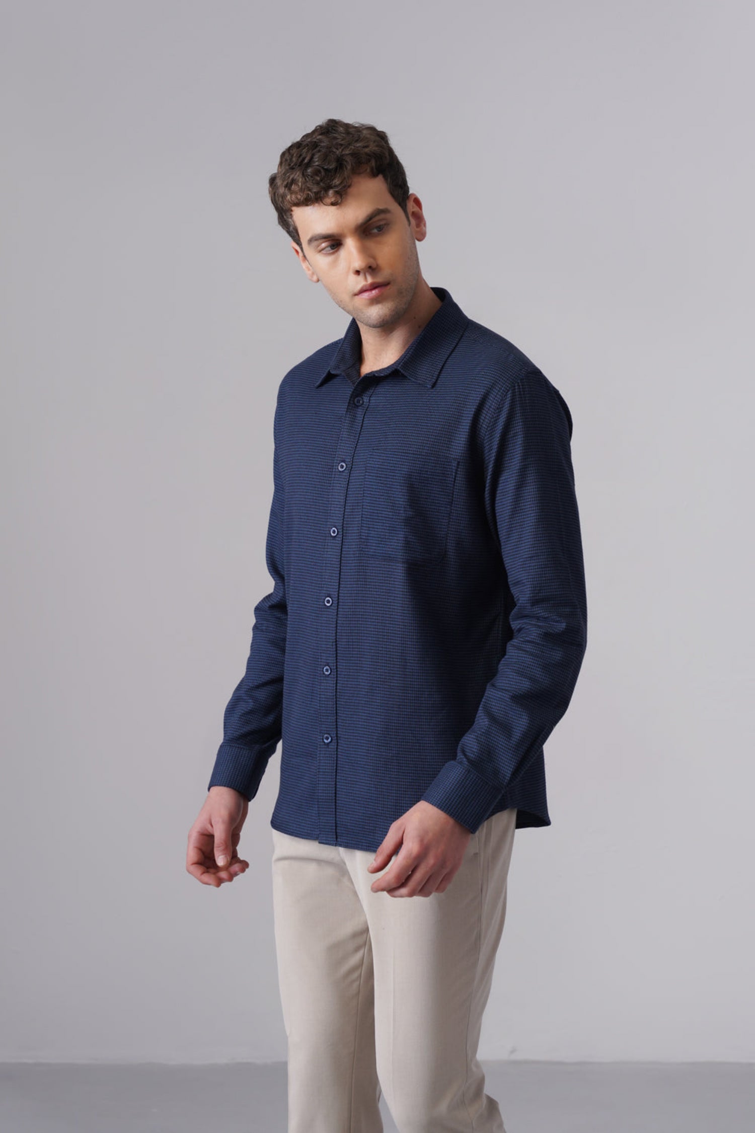 Add a timeless essential to your everyday wardrobe with this Men’s Blue Checked Full Sleeve Shirt from Minus One. Crafted from 100% cotton, this shirt delivers excellent breathability and a soft, natural feel—ideal for comfortable, all-day wear.