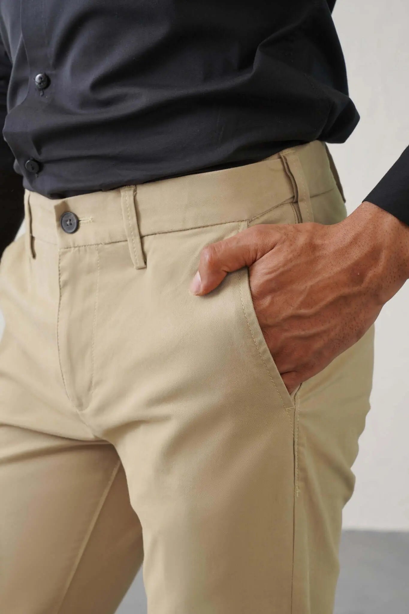 All you desired in a chino is now here. Yes, this Chino is made of pure cotton, but it stretches. The Impossible is now possible, that too at an affordable price. Men's World Made Better!