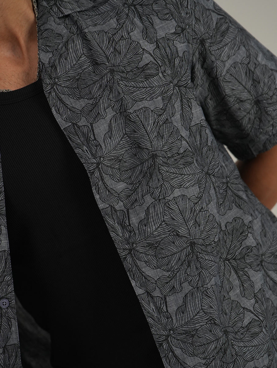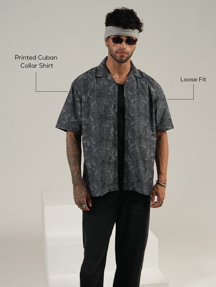 Printed Cuban Collar Shirt – Loose Fit Short Sleeve
