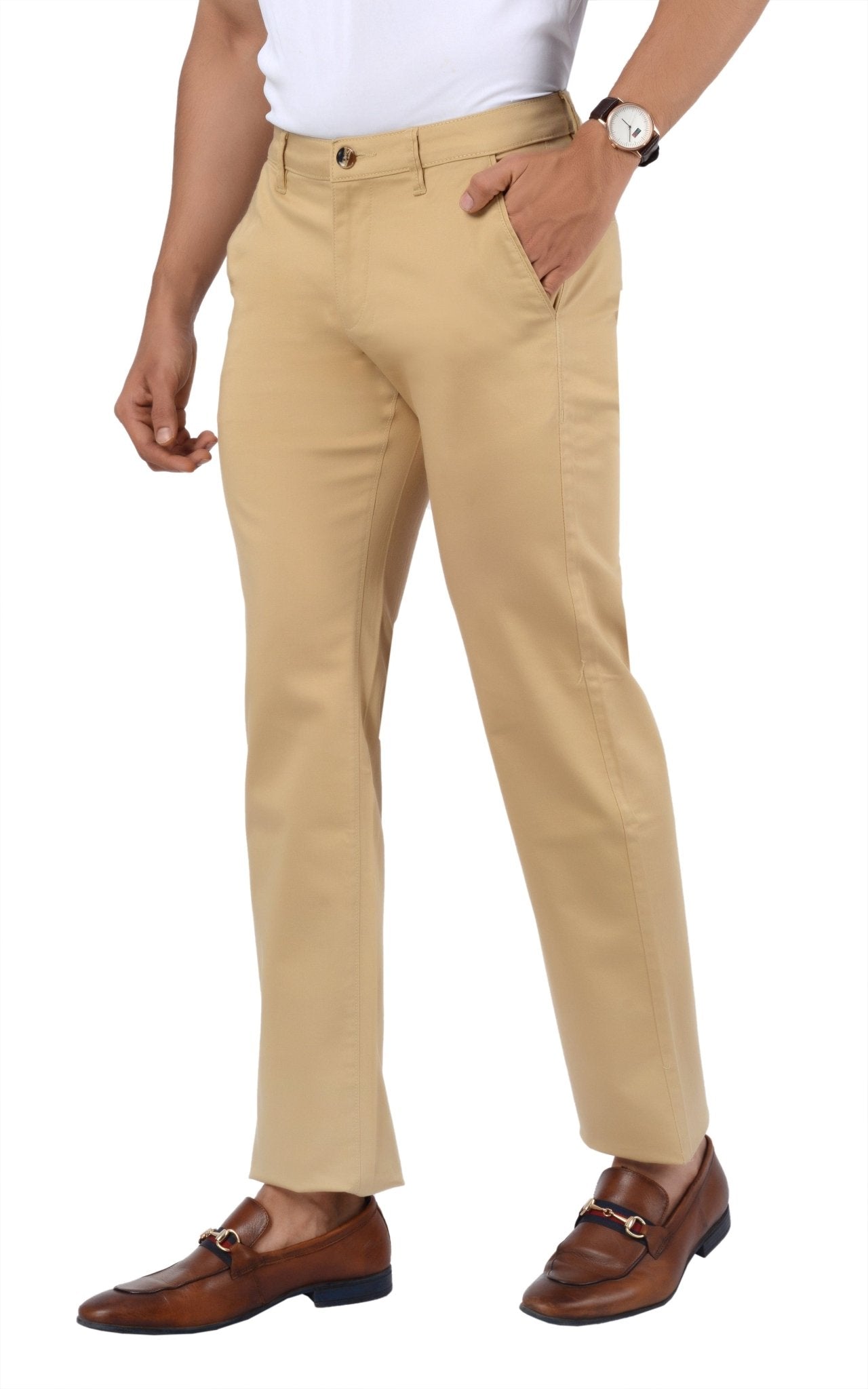 Refine your formal wardrobe with these sleek Khaki Regular-fit trousers from Gimaq. Crafted from premium cotton, these full-length trousers offer all-day comfort while maintaining a sharp, tailored look. Designed with a button fly for a secure fit, they seamlessly blend style and functionality, making them perfect for office wear, business meetings, or formal occasions. Pair them with a crisp shirt and dress shoes for a polished ensemble.