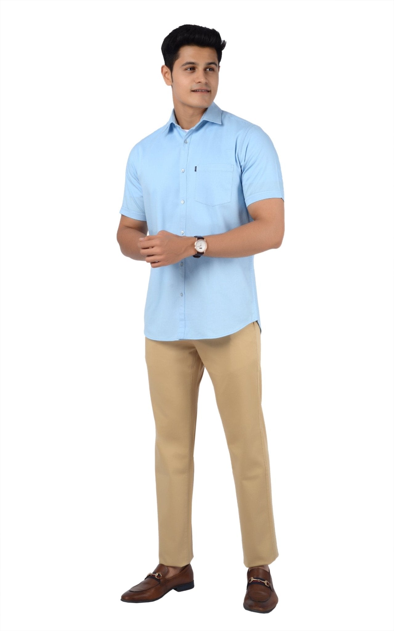 Powder Blue Half Sleeve Cuban Collar Shirt – Loose Fit