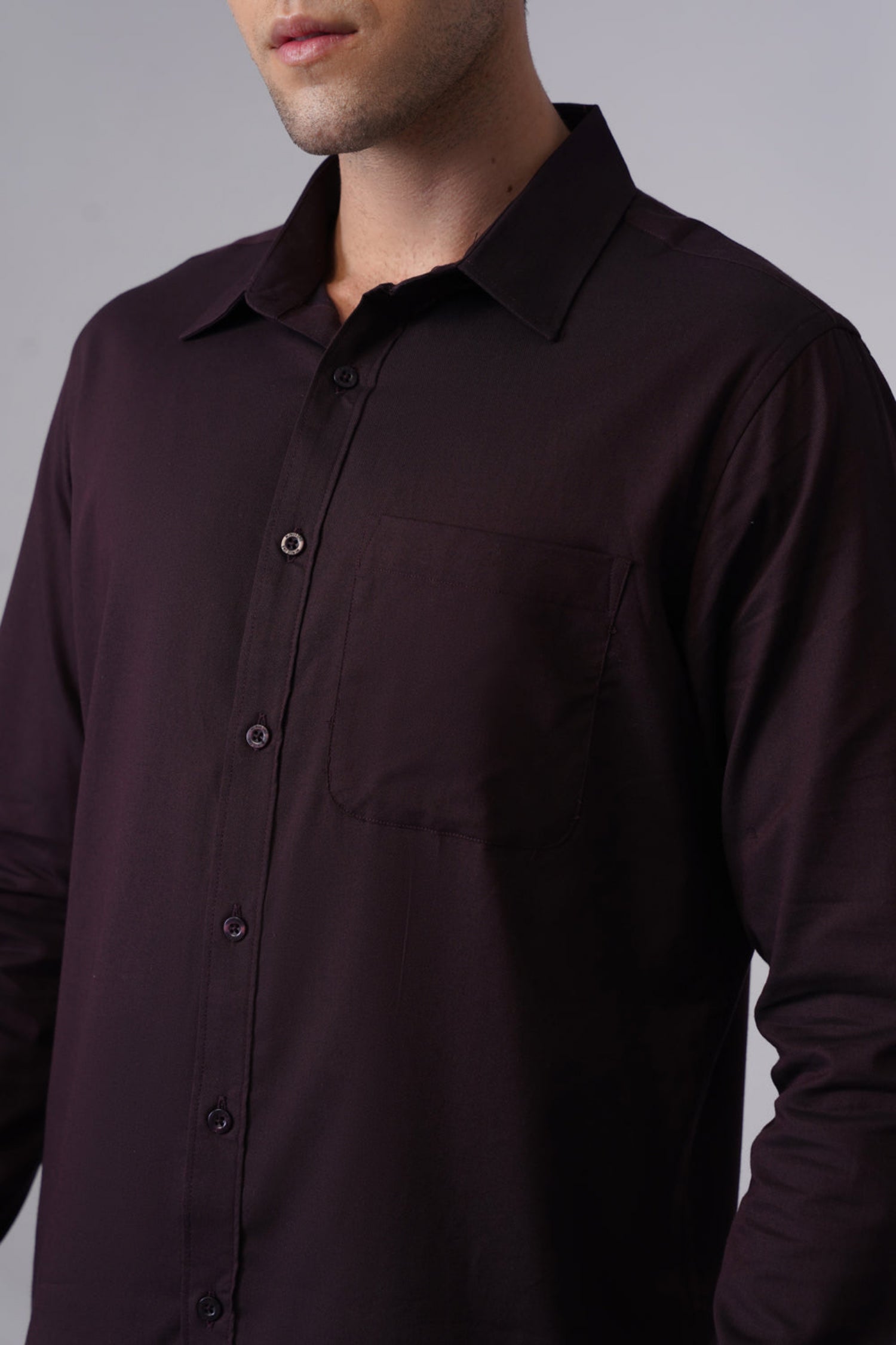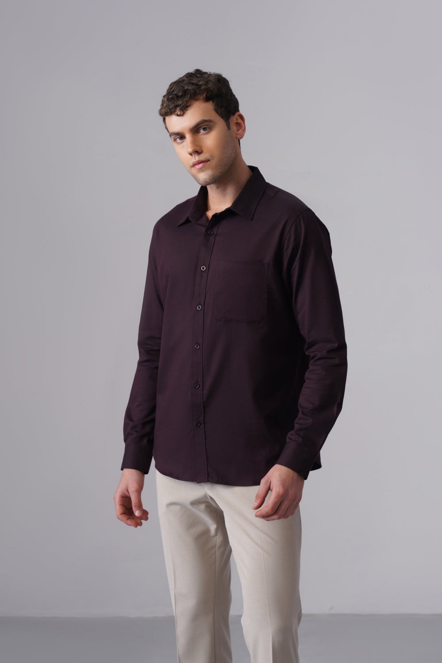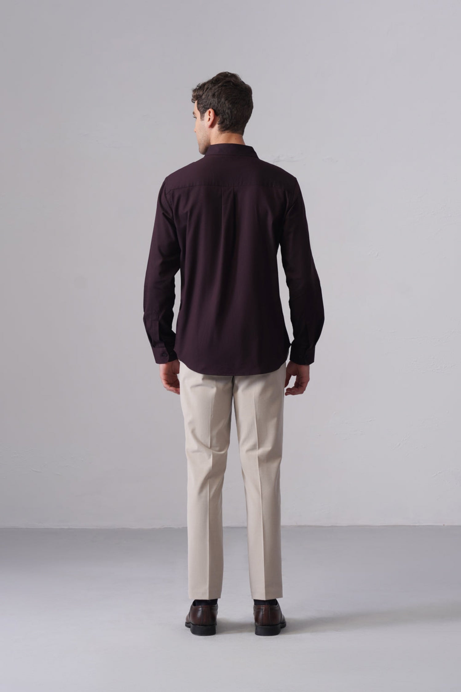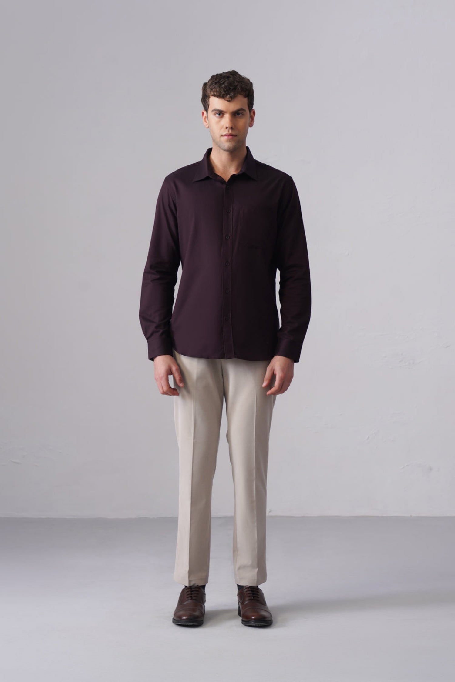 Wine Brushed Cotton Shirt – Regular Fit, Full Sleeves